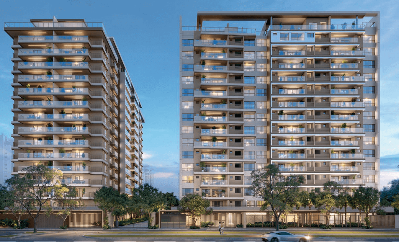 As unidades variam de acordo com a tipologia, com metragens amplas e bem distribuídas, pensadas para famílias que buscam sofisticação e praticidade.